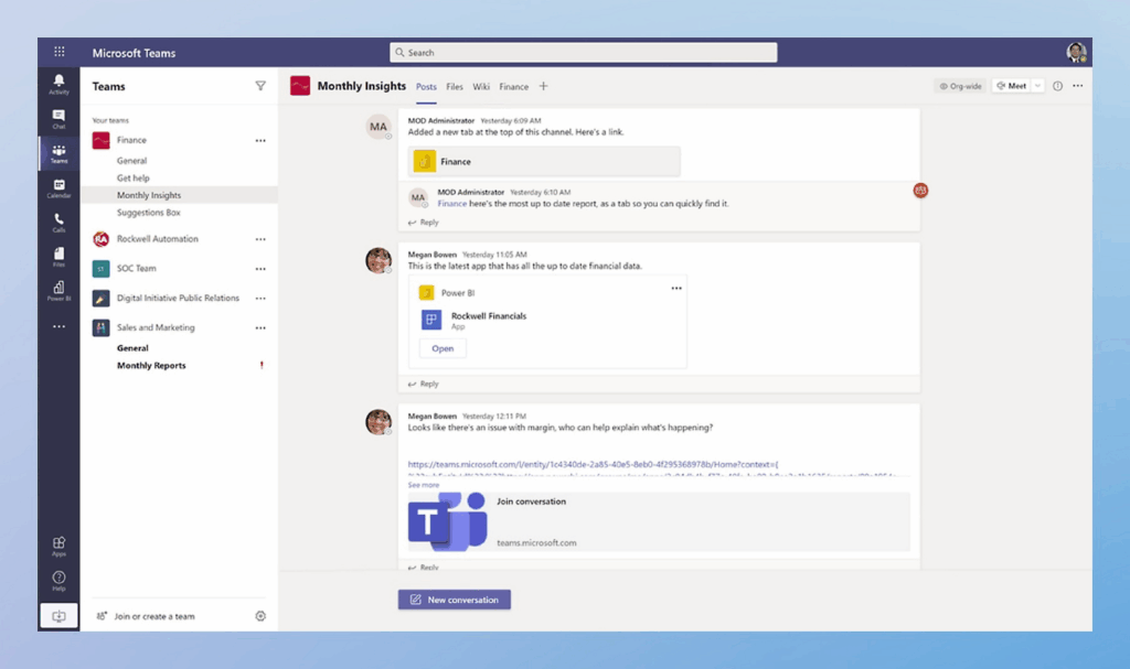 - Teams – masz raport gotowy? Wrzuć go do kanału i od razu podziel się z zespołem. Każdy członek zespołu ma dostęp do aktualnych danych w czasie rzeczywistym, bez potrzeby przesyłania plików mailem.